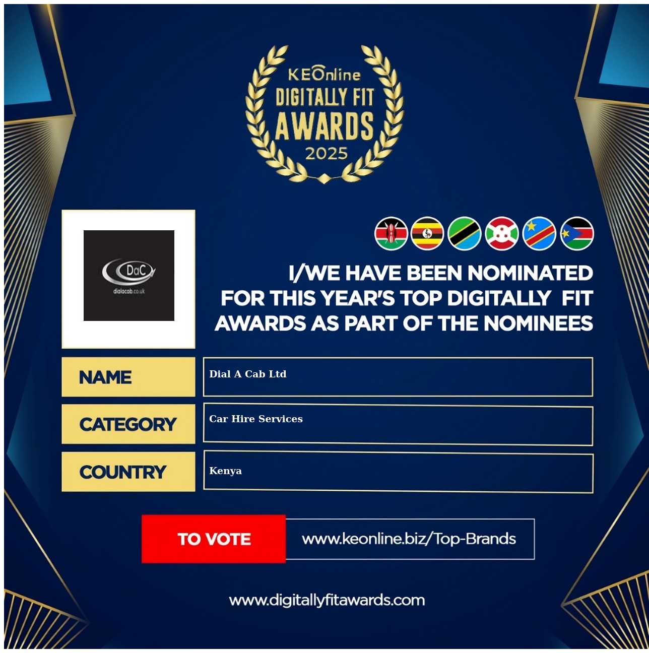 Dial A Cab Ltd is a company that specializes in Car Hire Services, The company has showed exemplary performance in services/products delivery. Dial A Cab Ltd is located in Kenya, Nairobi County and the address/physical location is at Bruce House, Standard St, Nairobi, Kenya. Are you the owner of this Business? Click here to claim it and update it fully.