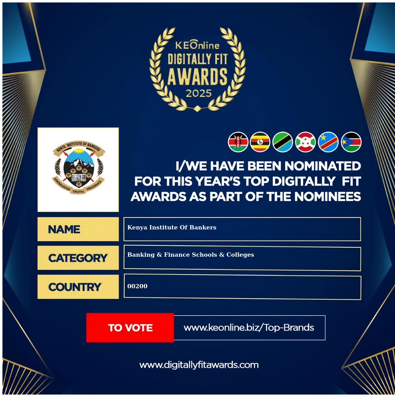 Kenya Institute Of Bankers is a company that specializes in Banking & Finance Schools & Colleges, Associations & Alliances, The company has showed exemplary performance in services/products delivery. Kenya Institute Of Bankers is located in 00200, Kenya and the address/physical location is at National Bank Building, 20th floor Harambee Ave, Nairobi, Kenya. Are you the owner of this Business? Click here to claim it and update it fully.