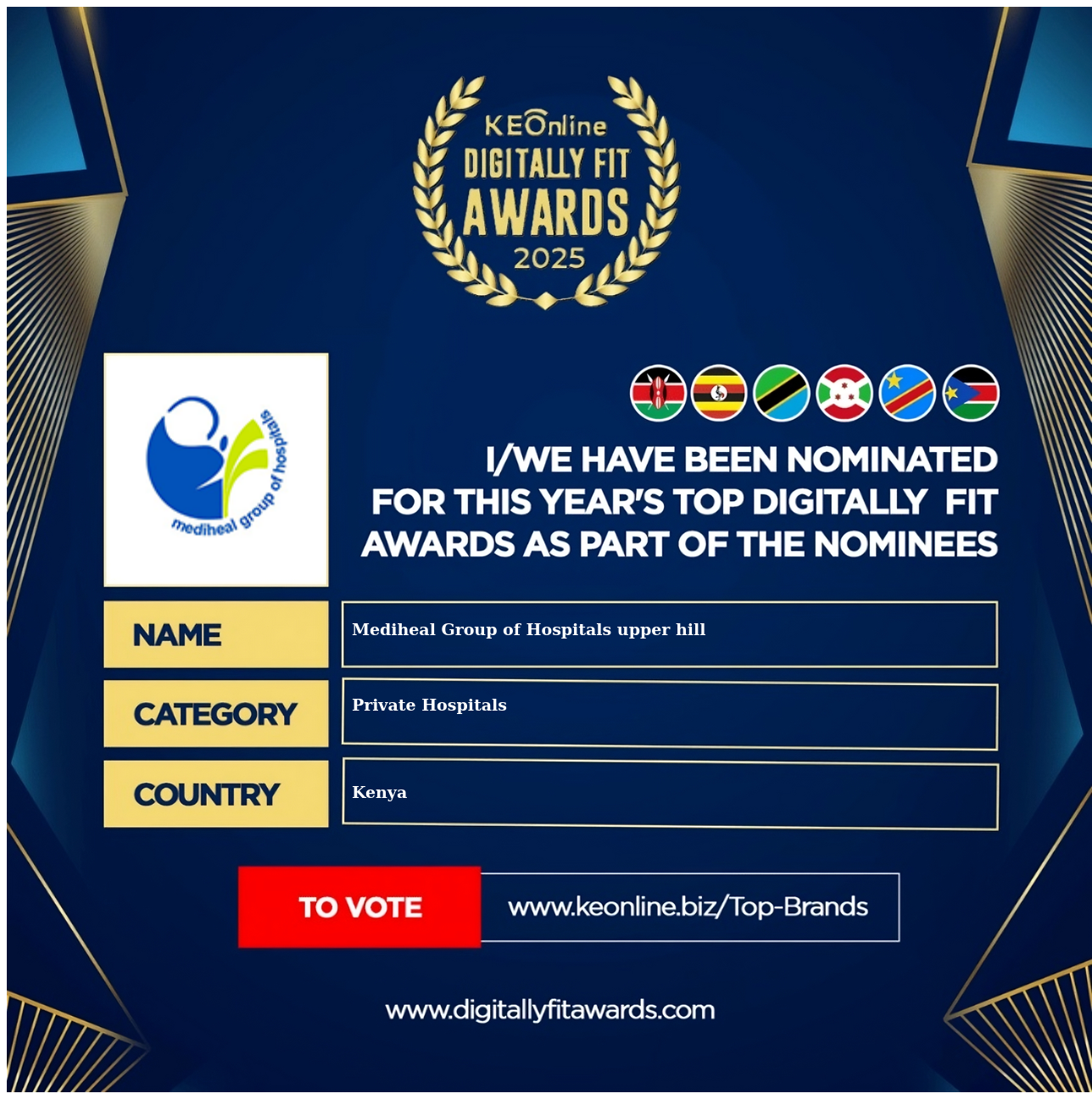 Mediheal Group of Hospitals upper hill is a company that specializes in Private Hospitals, The company has showed exemplary performance in services/products delivery. Mediheal Group of Hospitals upper hill is located in Kenya, Nairobi County and the address/physical location is at Kenyatta Hospital Estate, Nairobi, Kenya. Are you the owner of this Business? Click here to claim it and update it fully.