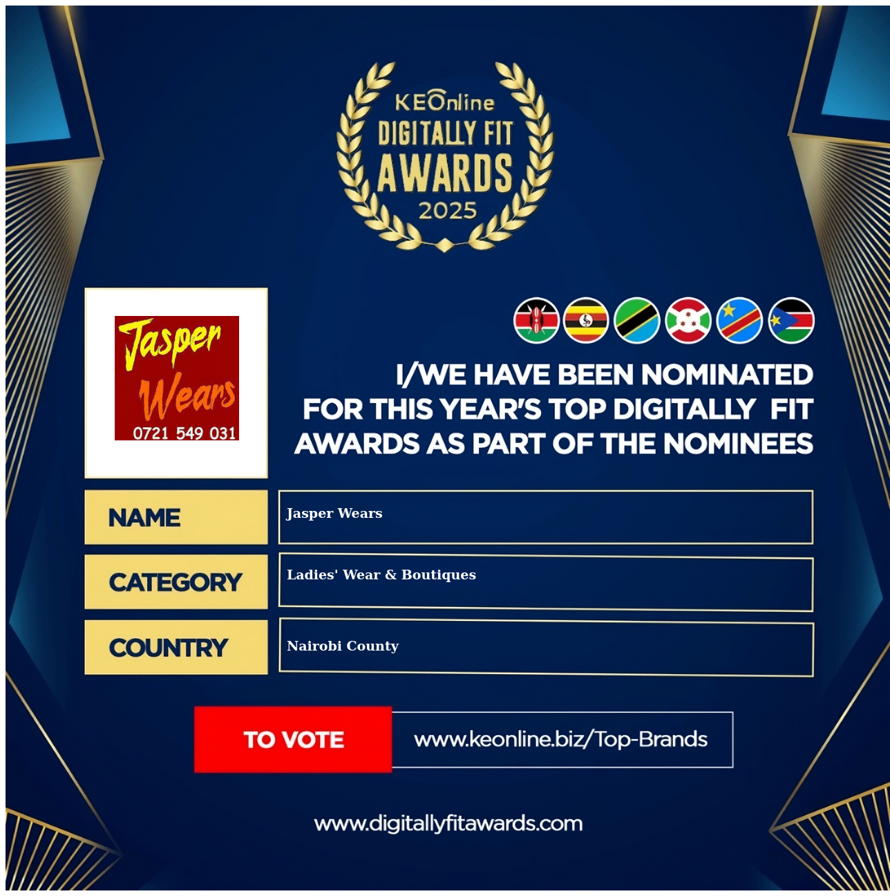 Jasper Wears is a company that specializes in Ladies' Wear & Boutiques, The company has showed exemplary performance in services/products delivery. Jasper Wears is located in Nairobi County, Nairobi and the address/physical location is at Jamia Mall first floor shop No F 80 Nairobi KE, Nairobi, Kenya. Are you the owner of this Business? Click here to claim it and update it fully.