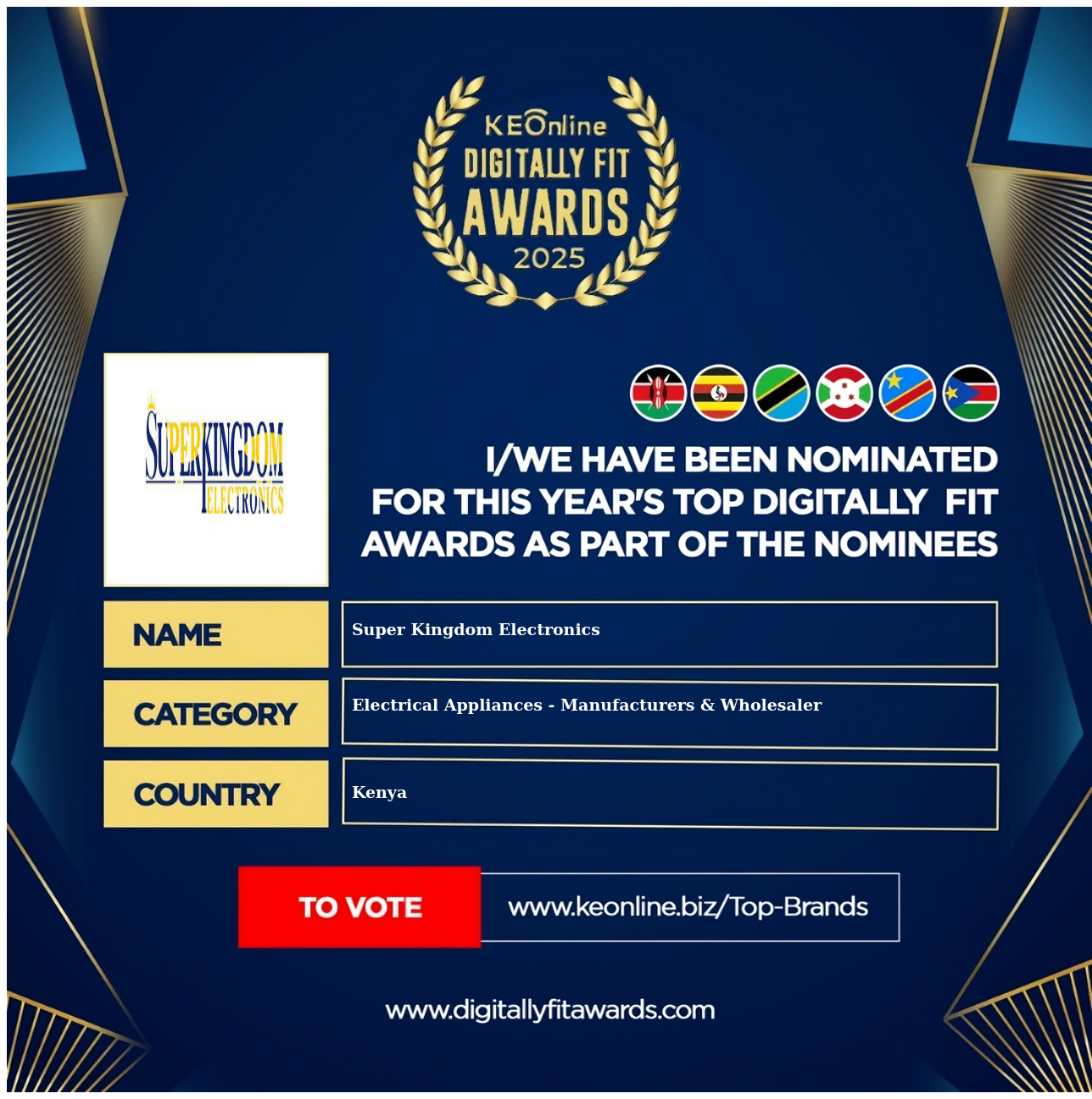 Super Kingdom Electronics is a company that specializes in Electrical Appliances - Manufacturers & Wholesaler, The company has showed exemplary performance in services/products delivery. Super Kingdom Electronics is located in Kenya, Nairobi County and the address/physical location is at Accra Road Cookie House, 3RD Floor Shop 315, Nairobi, Kenya. Are you the owner of this Business? Click here to claim it and update it fully.