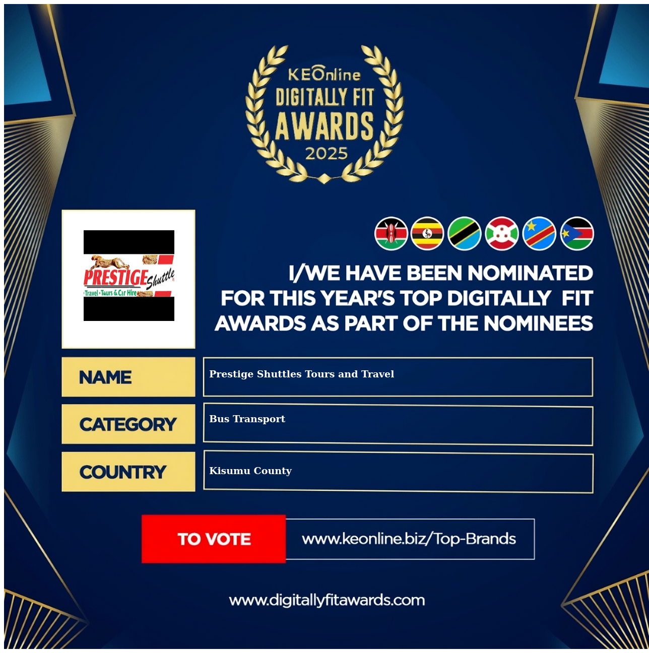 Prestige Shuttles Tours and Travel is a company that specializes in Bus Transport, Car Hire Services, Tours & Travels, The company has showed exemplary performance in services/products delivery. Prestige Shuttles Tours and Travel is located in Kisumu County, Kisumu and the address/physical location is at Kisumu West, Kisumu, Kenya. Are you the owner of this Business? Click here to claim it and update it fully.