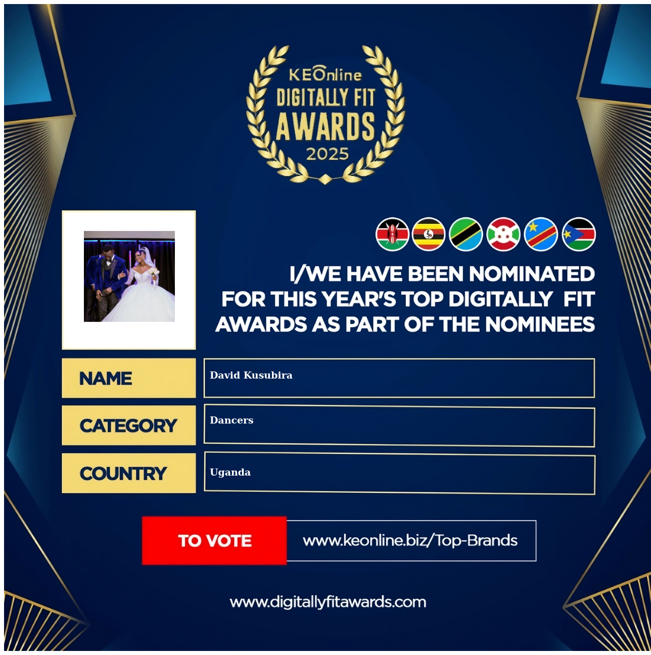 David Kusubira is a company that specializes in Dancers, The company has showed exemplary performance in services/products delivery. David Kusubira is located in Uganda, and the address/physical location is at X street address. Are you the owner of this Business? Click here to claim it and update it fully.