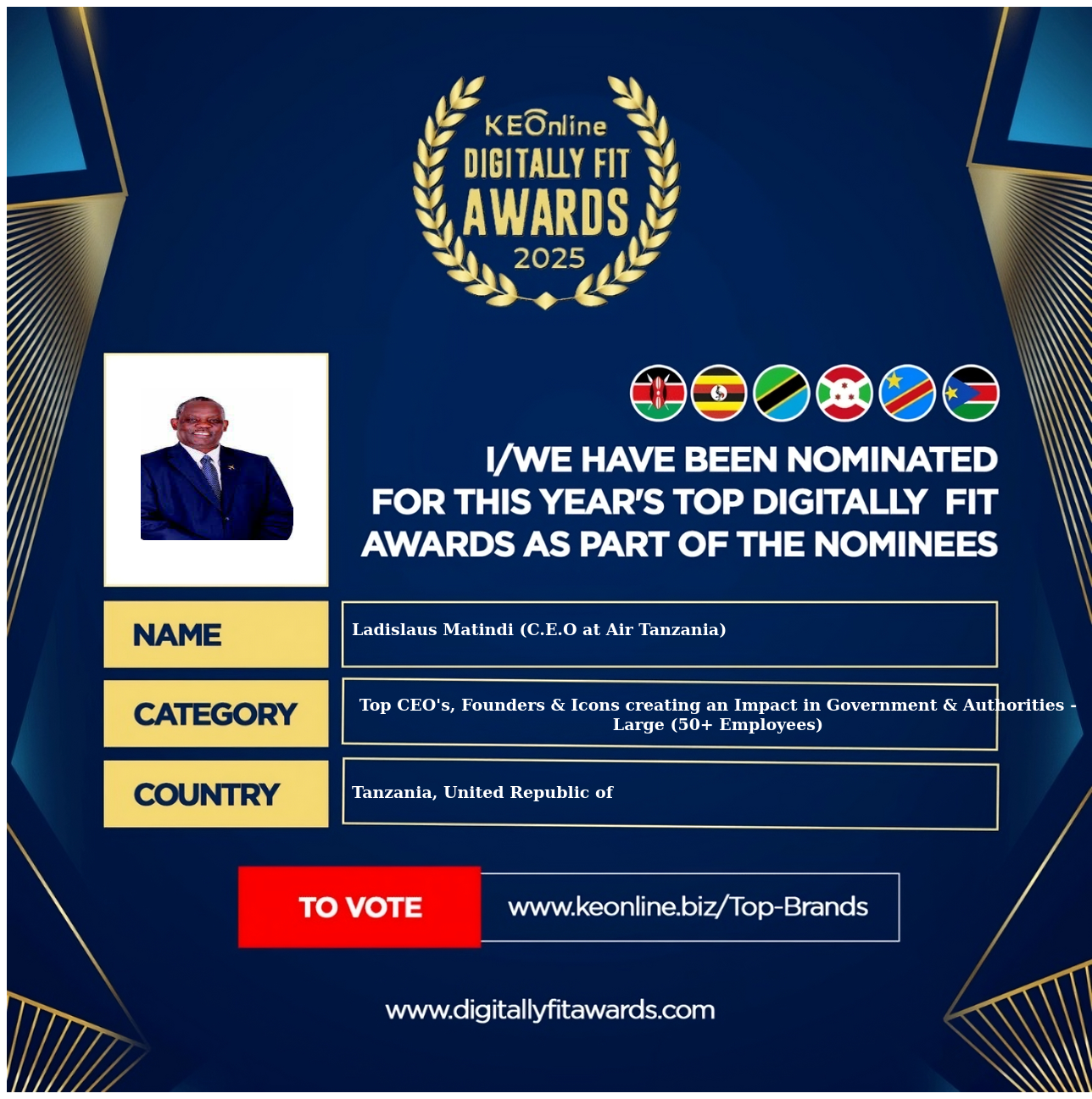 Ladislaus Matindi (C.E.O at Air Tanzania) is a company that specializes in Top CEO's, Founders & Icons creating an Impact in Government & Authorities - Large (50+ Employees), The company has showed exemplary performance in services/products delivery. Ladislaus Matindi (C.E.O at Air Tanzania) is located in Tanzania, United Republic of, Dar es Salaam and the address/physical location is at X street address. Are you the owner of this Business? Click here to claim it and update it fully.