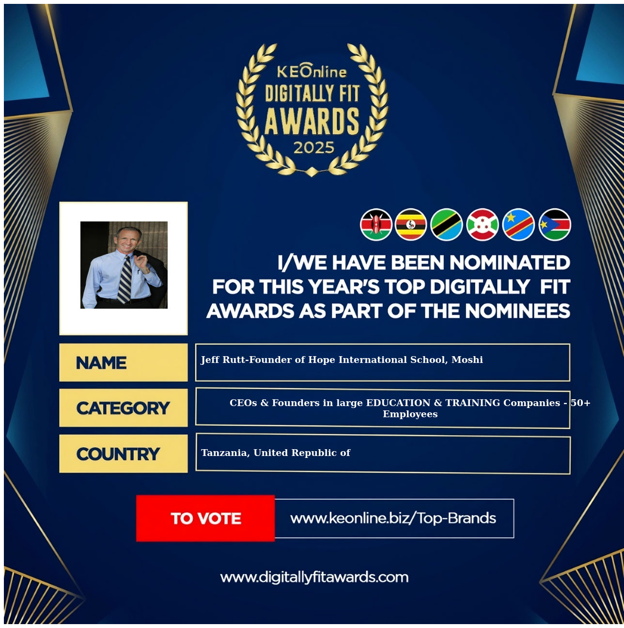 Jeff Rutt-Founder of Hope International School, Moshi is a company that specializes in CEOs & Founders in large EDUCATION & TRAINING Companies - 50+ Employees, The company has showed exemplary performance in services/products delivery. Jeff Rutt-Founder of Hope International School, Moshi is located in Tanzania, United Republic of, Kilimanjaro and the address/physical location is at X street address. Are you the owner of this Business? Click here to claim it and update it fully.