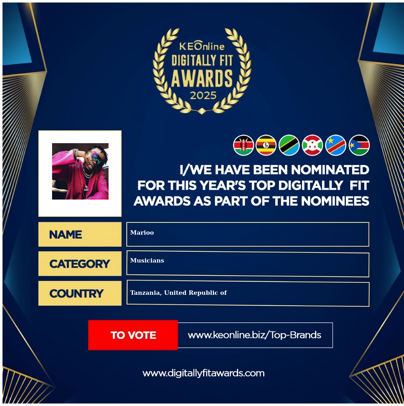 Marioo is a company that specializes in Musicians, The company has showed exemplary performance in services/products delivery. Marioo is located in Tanzania, United Republic of, and the address/physical location is at X street address. Are you the owner of this Business? Click here to claim it and update it fully.