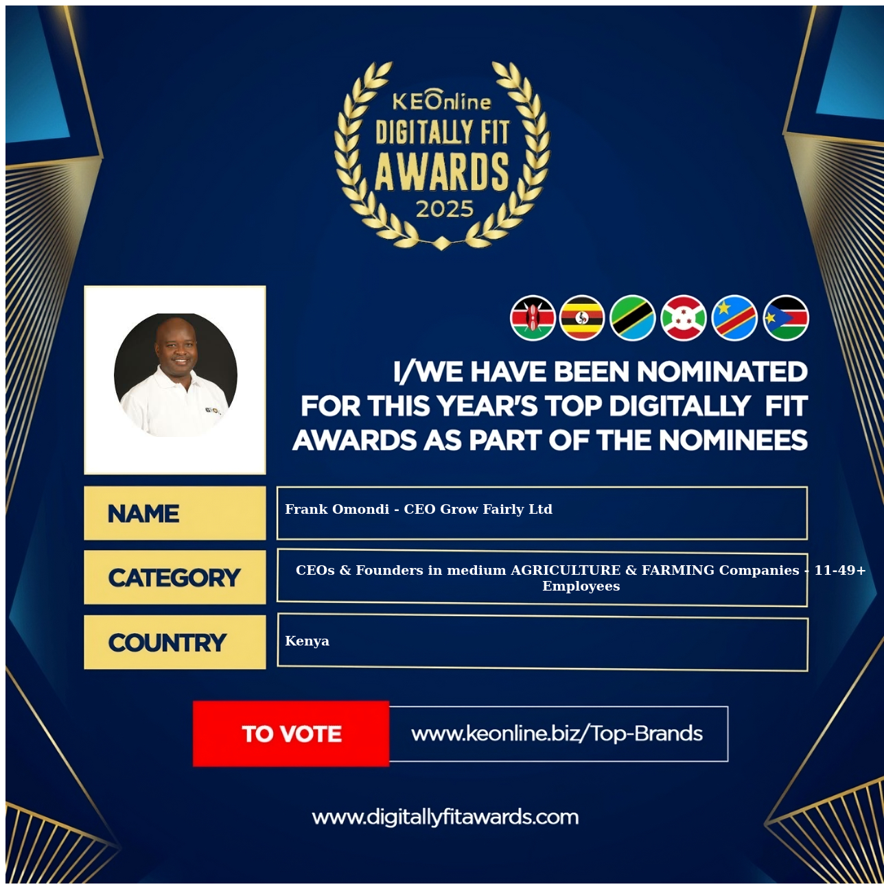 Frank Omondi - CEO Grow Fairly Ltd is a company that specializes in CEOs & Founders in medium AGRICULTURE & FARMING Companies - 11-49+ Employees, The company has showed exemplary performance in services/products delivery. Frank Omondi - CEO Grow Fairly Ltd is located in Kenya, Kilifi and the address/physical location is at X street address. Are you the owner of this Business? Click here to claim it and update it fully.