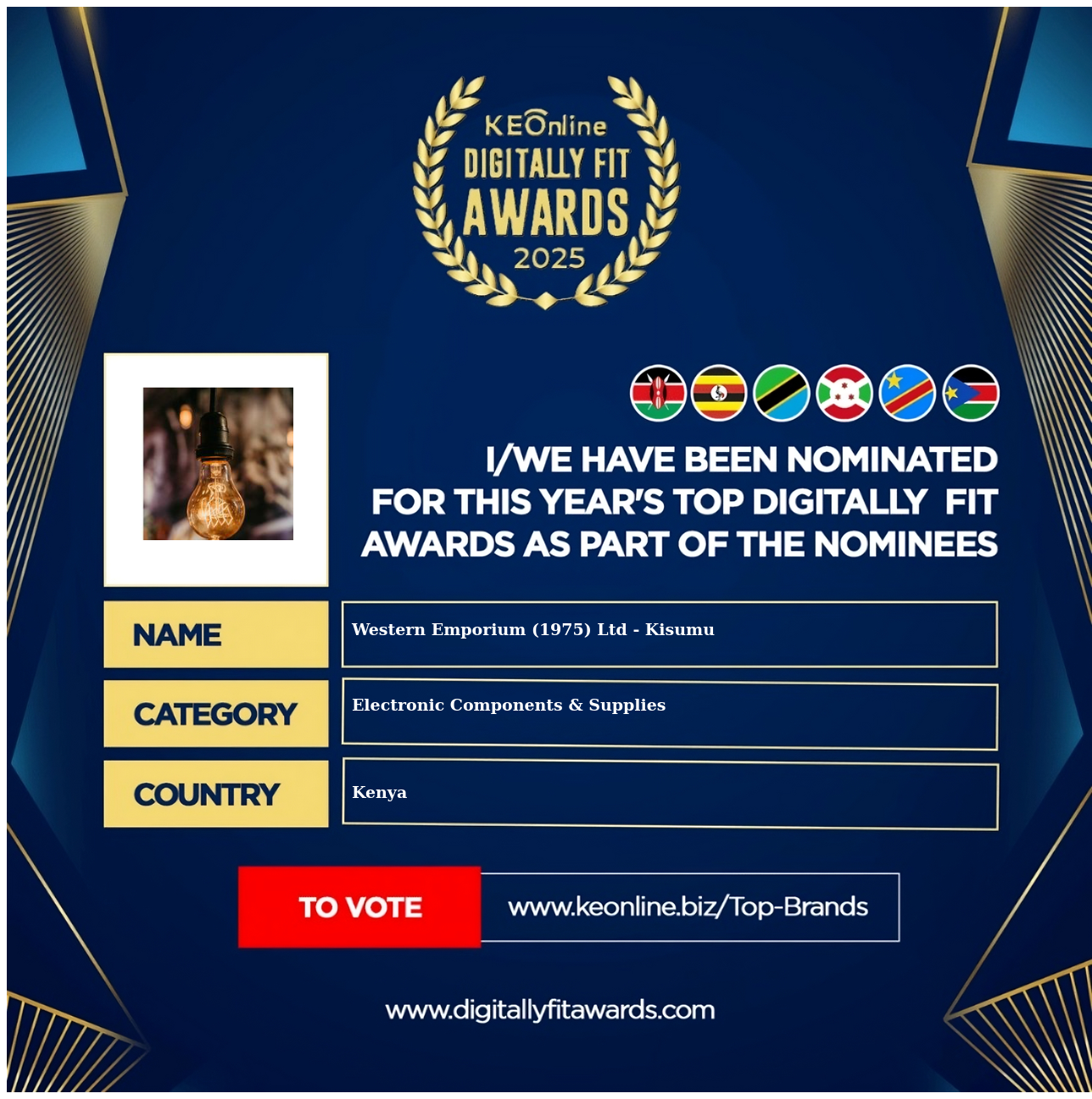 Western Emporium (1975) Ltd - Kisumu is a company that specializes in Electronic Components & Supplies, The company has showed exemplary performance in services/products delivery. Western Emporium (1975) Ltd - Kisumu is located in Kenya, Kisumu and the address/physical location is at X street address. Are you the owner of this Business? Click here to claim it and update it fully.