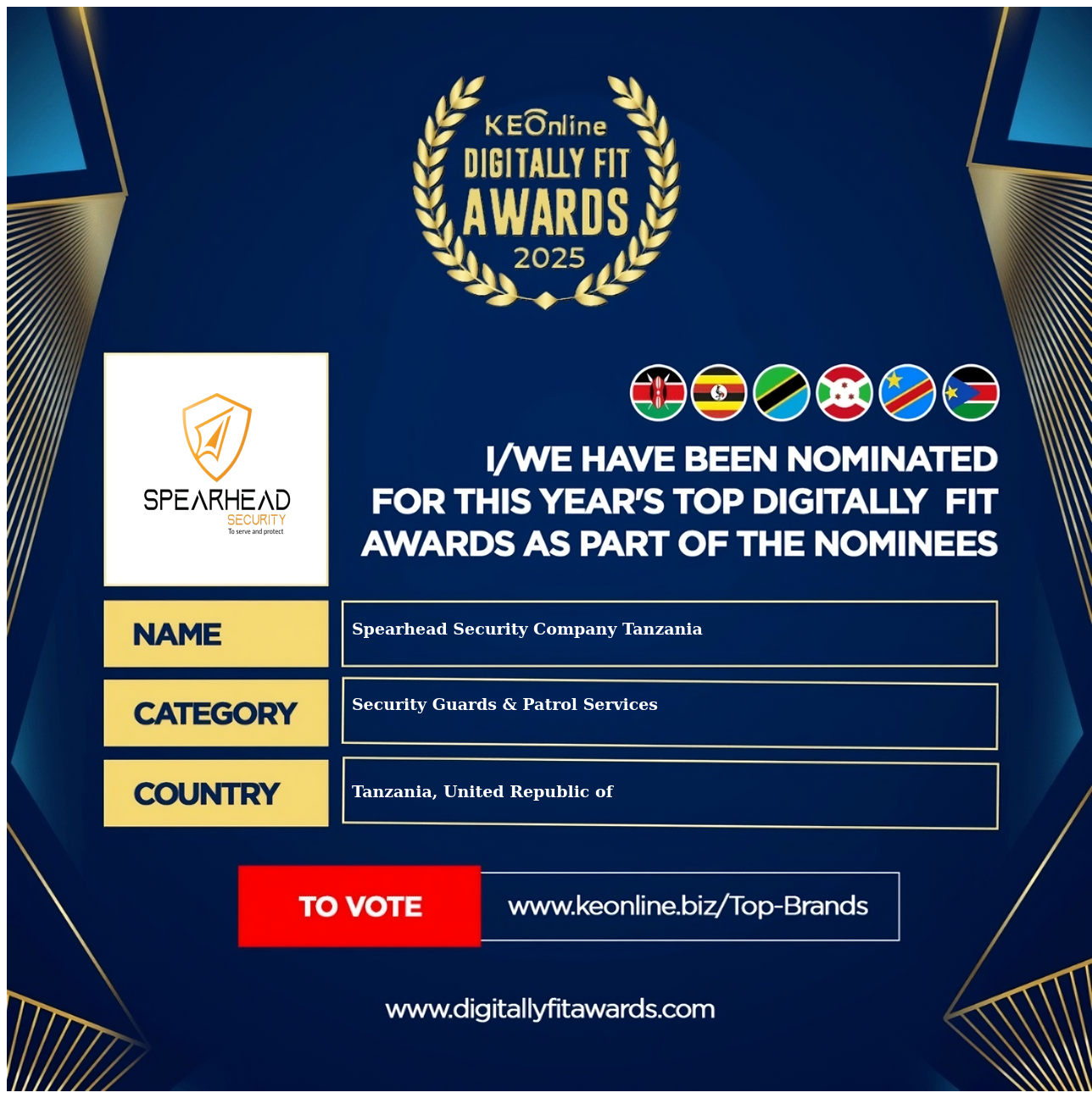 Spearhead Security Company Tanzania is a company that specializes in Security Guards & Patrol Services, Security Systems & Equipment, The company has showed exemplary performance in services/products delivery. Spearhead Security Company Tanzania is located in Tanzania, United Republic of, Dar es Salaam and the address/physical location is at Plot no.223, Kibada Center, Mwasonga Road, JL Complex, 1 st Floor, Block 20 Kibada Road, Dar es Salaam 2032, Tanzania. Are you the owner of this Business? Click here to claim it and update it fully.
