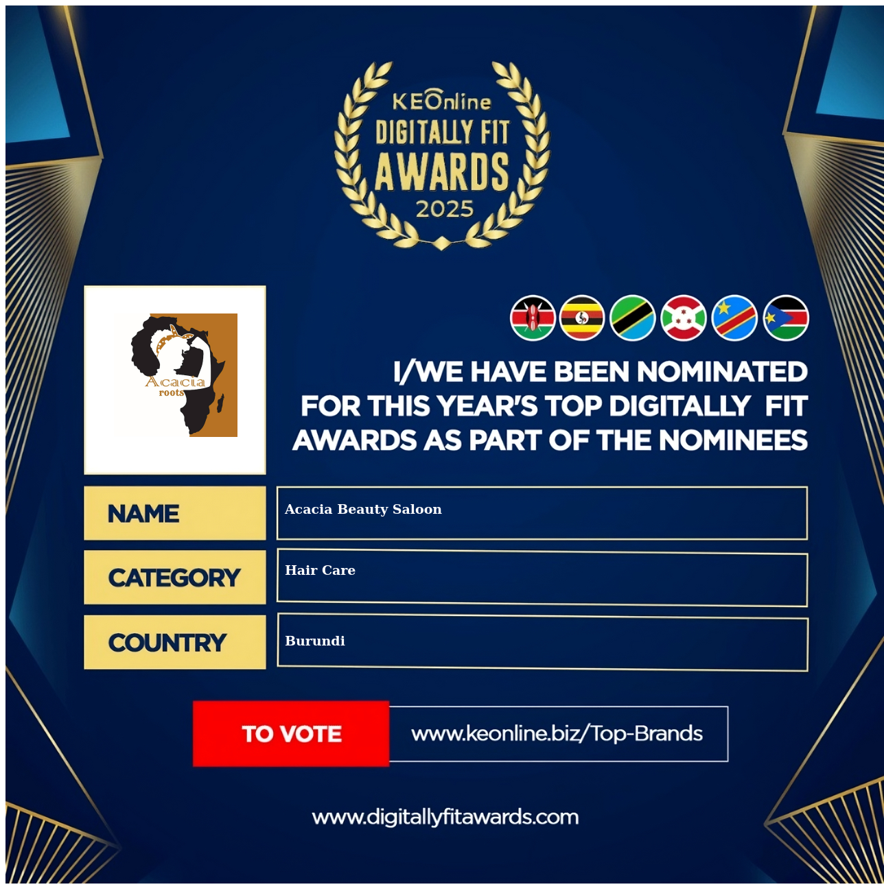Acacia Beauty Saloon is a company that specializes in Hair Care, Beauty, SPA & Hair Salons, The company has showed exemplary performance in services/products delivery. Acacia Beauty Saloon is located in Burundi, and the address/physical location is at Numero 12, Heliodore Building, Ave De La J.R.R, Bujumbura, Burundi. Are you the owner of this Business? Click here to claim it and update it fully.
