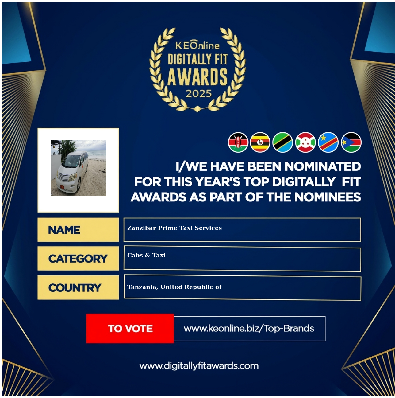 Zanzibar Prime Taxi Services is a company that specializes in Cabs & Taxi, e-Taxi & e-Cabs Taxis, The company has showed exemplary performance in services/products delivery. Zanzibar Prime Taxi Services is located in Tanzania, United Republic of, and the address/physical location is at Parada de taxis, Av. de Francia, 51, 03191 Mil Palmeras, Alicante, Spain. Are you the owner of this Business? Click here to claim it and update it fully.