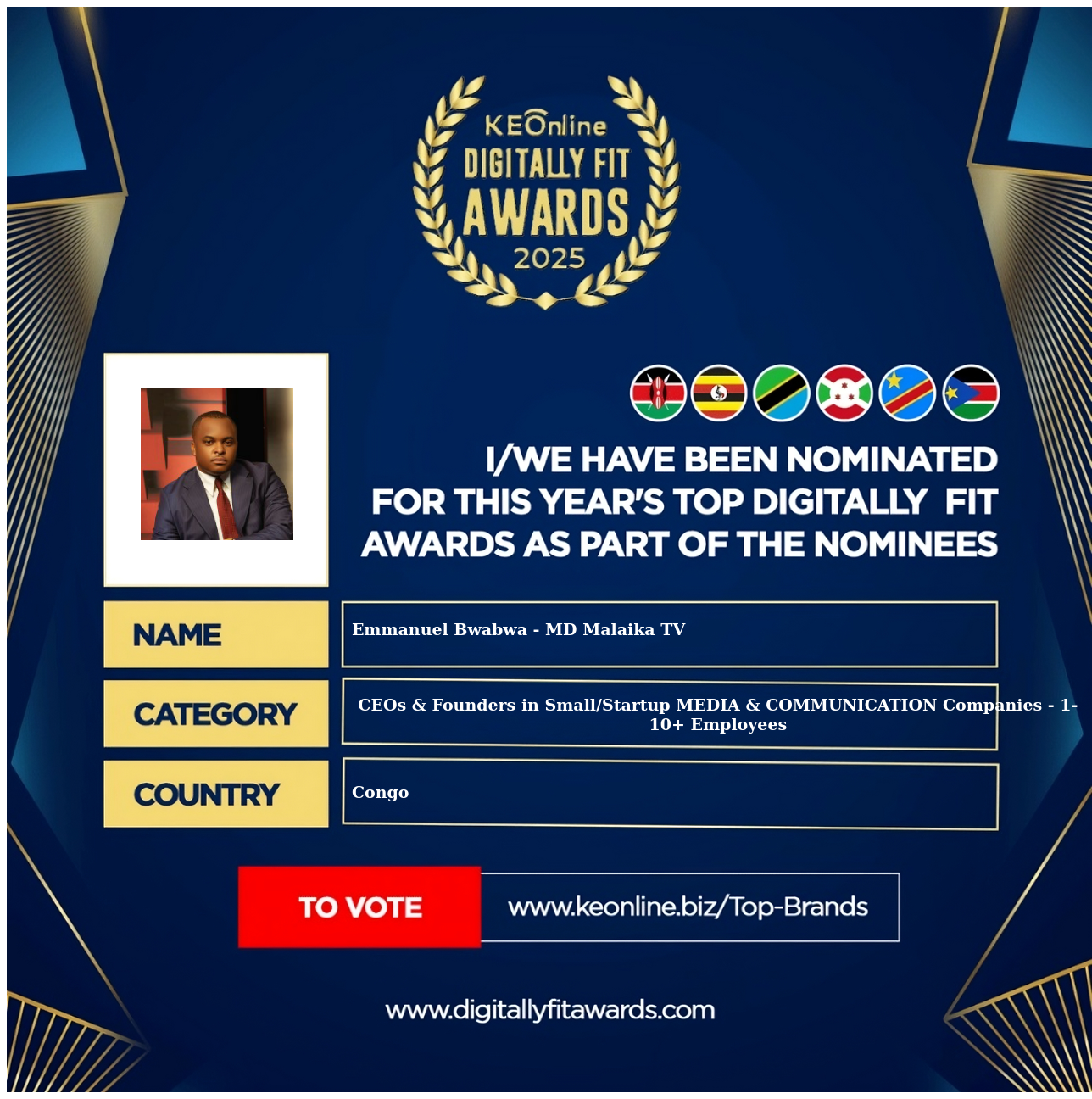 Emmanuel Bwabwa - MD Malaika TV is a company that specializes in CEOs & Founders in Small/Startup MEDIA & COMMUNICATION Companies - 1-10+ Employees, The company has showed exemplary performance in services/products delivery. Emmanuel Bwabwa - MD Malaika TV is located in Congo, and the address/physical location is at X street address. Are you the owner of this Business? Click here to claim it and update it fully.