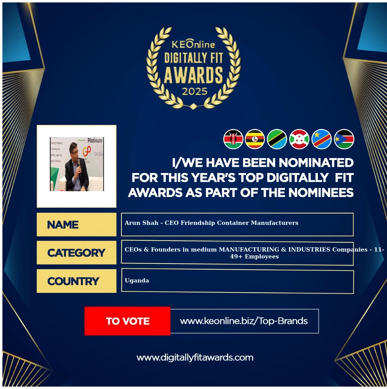Arun Shah - CEO Friendship Container Manufacturers is a company that specializes in CEOs & Founders in medium MANUFACTURING & INDUSTRIES Companies - 11-49+ Employees, The company has showed exemplary performance in services/products delivery. Arun Shah - CEO Friendship Container Manufacturers is located in Uganda, and the address/physical location is at X street address. Are you the owner of this Business? Click here to claim it and update it fully.