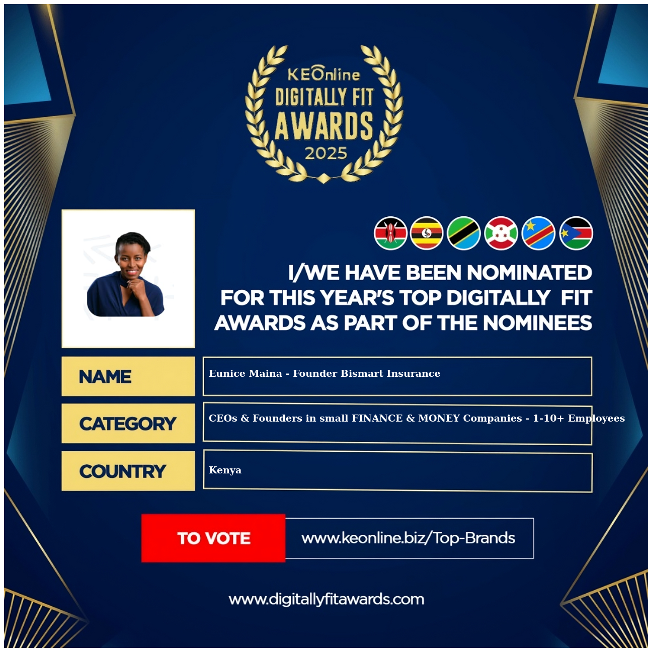 Eunice Maina - Founder Bismart Insurance is a company that specializes in CEOs & Founders in small FINANCE & MONEY Companies - 1-10+ Employees, The company has showed exemplary performance in services/products delivery. Eunice Maina - Founder Bismart Insurance is located in Kenya, and the address/physical location is at X street address. Are you the owner of this Business? Click here to claim it and update it fully.