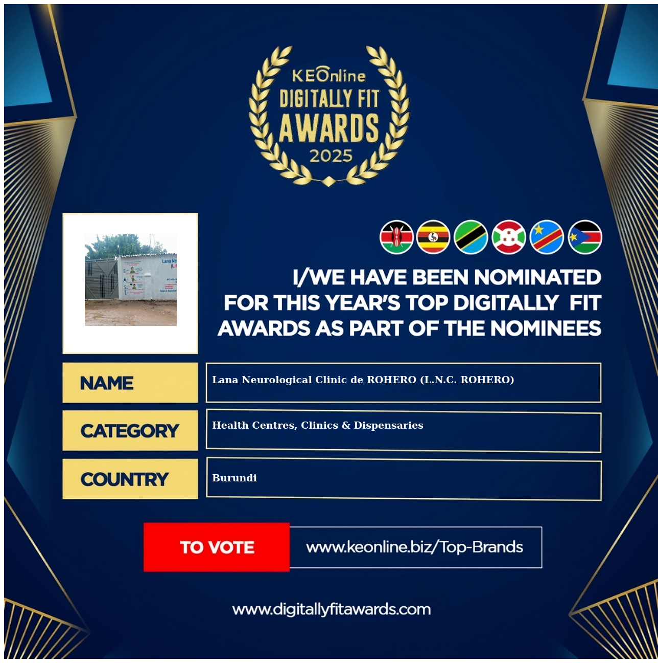 Lana Neurological Clinic de ROHERO (L.N.C. ROHERO) is a company that specializes in Health Centres, Clinics & Dispensaries, The company has showed exemplary performance in services/products delivery. Lana Neurological Clinic de ROHERO (L.N.C. ROHERO) is located in Burundi, Bujumbura Mairie and the address/physical location is at 97 Bd de l'Uprona. Are you the owner of this Business? Click here to claim it and update it fully.