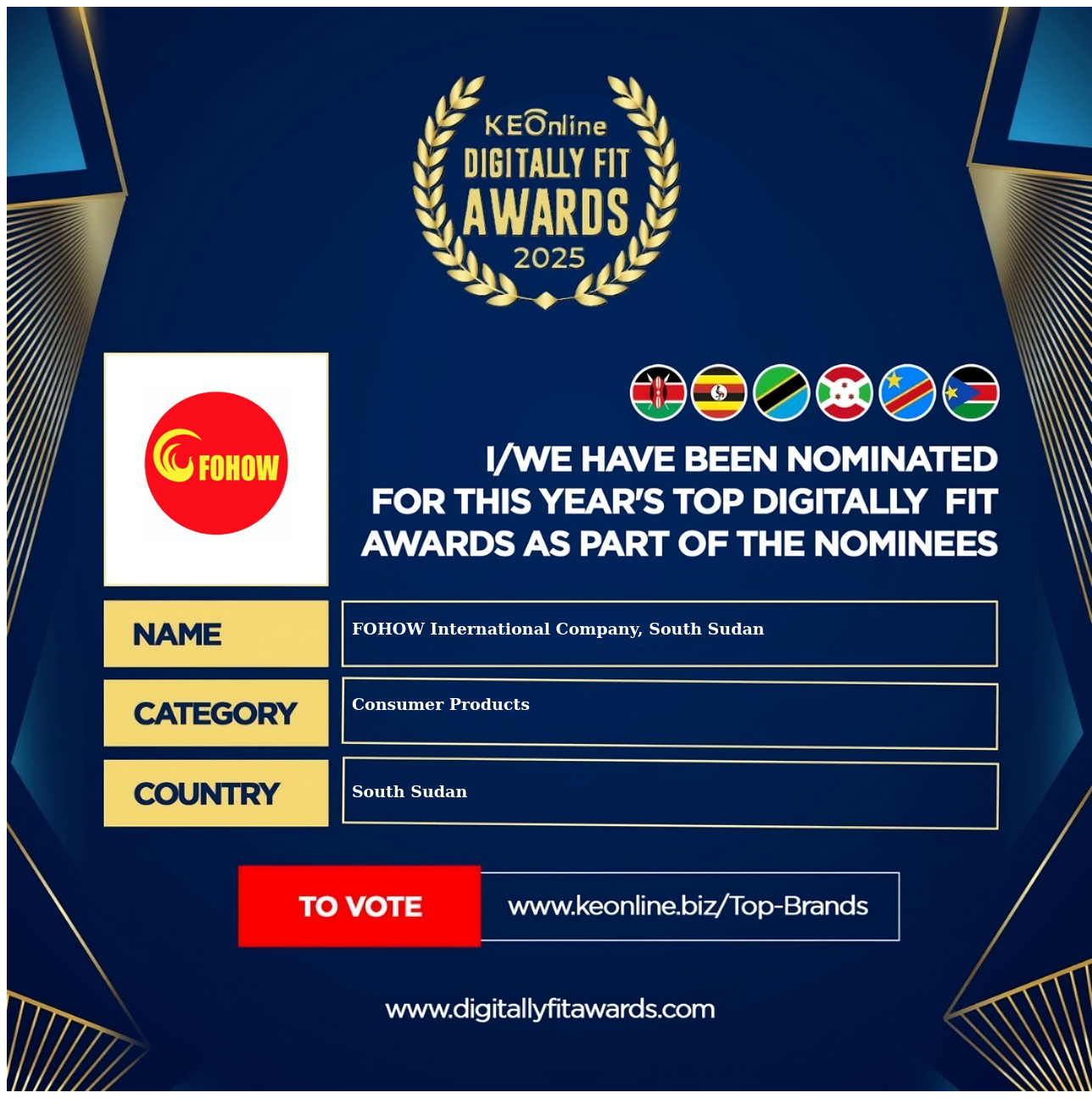 FOHOW International Company, South Sudan is a company that specializes in Consumer Products, The company has showed exemplary performance in services/products delivery. FOHOW International Company, South Sudan is located in South Sudan, Juba and the address/physical location is at X street address. Are you the owner of this Business? Click here to claim it and update it fully.
