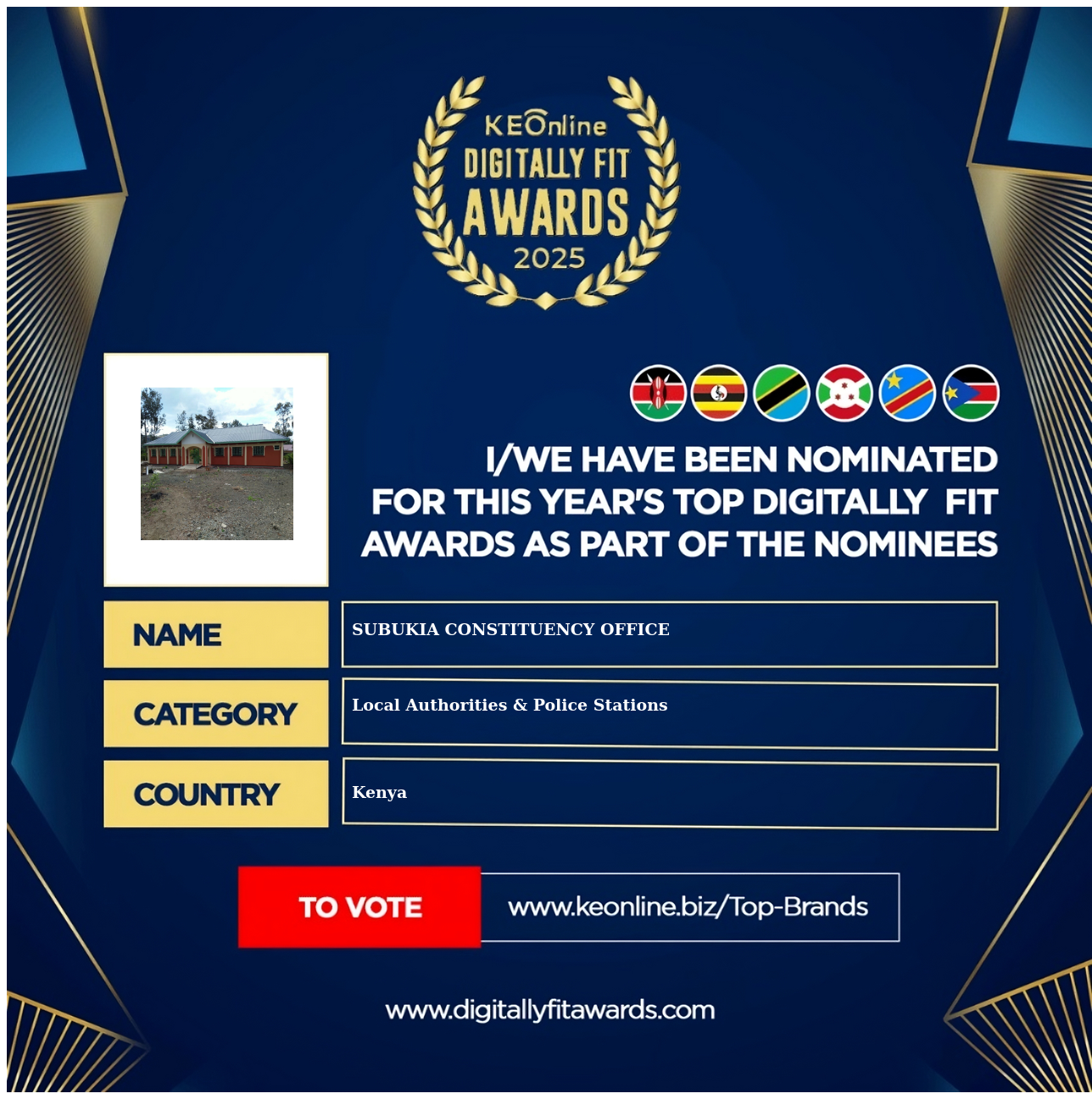 SUBUKIA CONSTITUENCY OFFICE is a company that specializes in Local Authorities & Police Stations, The company has showed exemplary performance in services/products delivery. SUBUKIA CONSTITUENCY OFFICE is located in Kenya, Nakuru and the address/physical location is at Subukia, Kenya. Are you the owner of this Business? Click here to claim it and update it fully.
