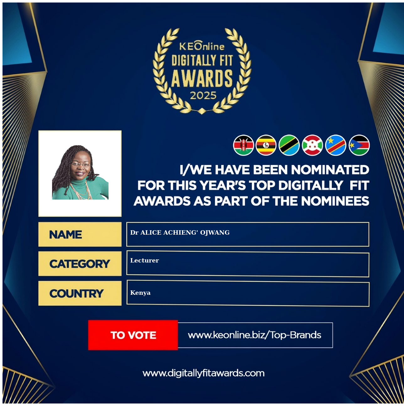 Dr ALICE ACHIENG' OJWANG is a company that specializes in Lecturer, The company has showed exemplary performance in services/products delivery. Dr ALICE ACHIENG' OJWANG is located in Kenya, Nairobi and the address/physical location is at X street address. Are you the owner of this Business? Click here to claim it and update it fully.