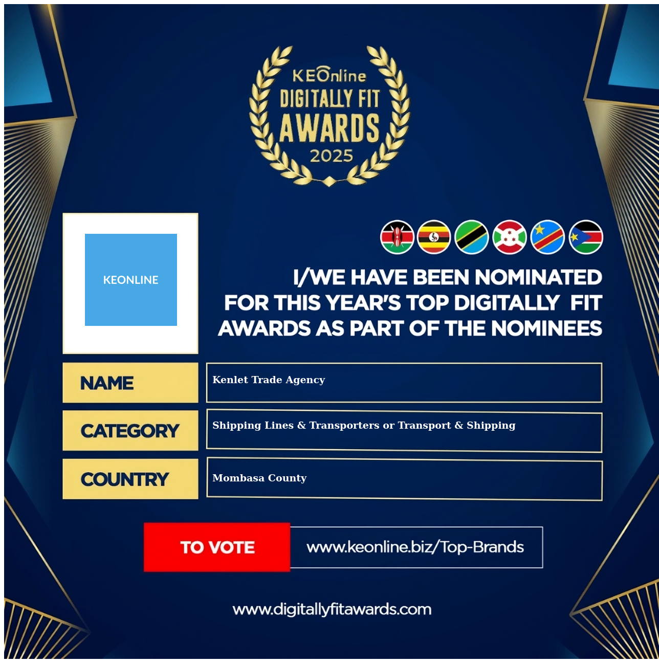 Kenlet Trade Agency is a company that specializes in Shipping Lines & Transporters or Transport & Shipping, The company has showed exemplary performance in services/products delivery. Kenlet Trade Agency is located in Mombasa County, Mombasa and the address/physical location is at Majengo Haile Selassie ave Ngumu Hse, Mombasa, Kenya. Are you the owner of this Business? Click here to claim it and update it fully.