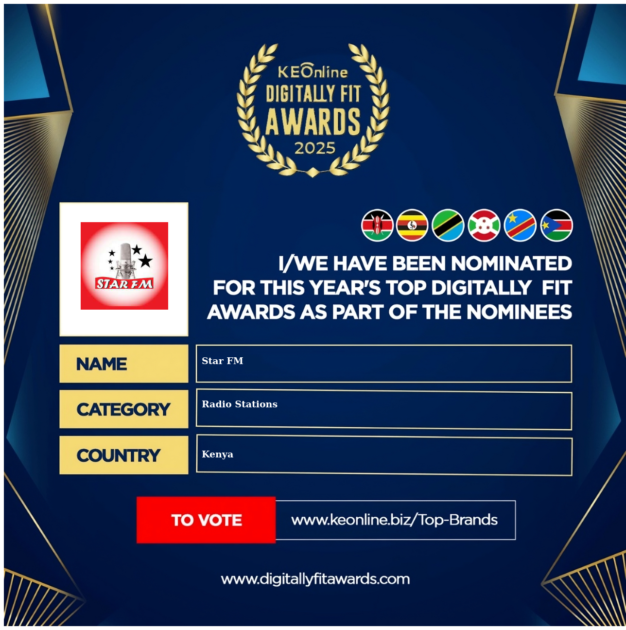Star FM is a company that specializes in Radio Stations, The company has showed exemplary performance in services/products delivery. Star FM is located in Kenya, Nairobi and the address/physical location is at X street address. Are you the owner of this Business? Click here to claim it and update it fully.