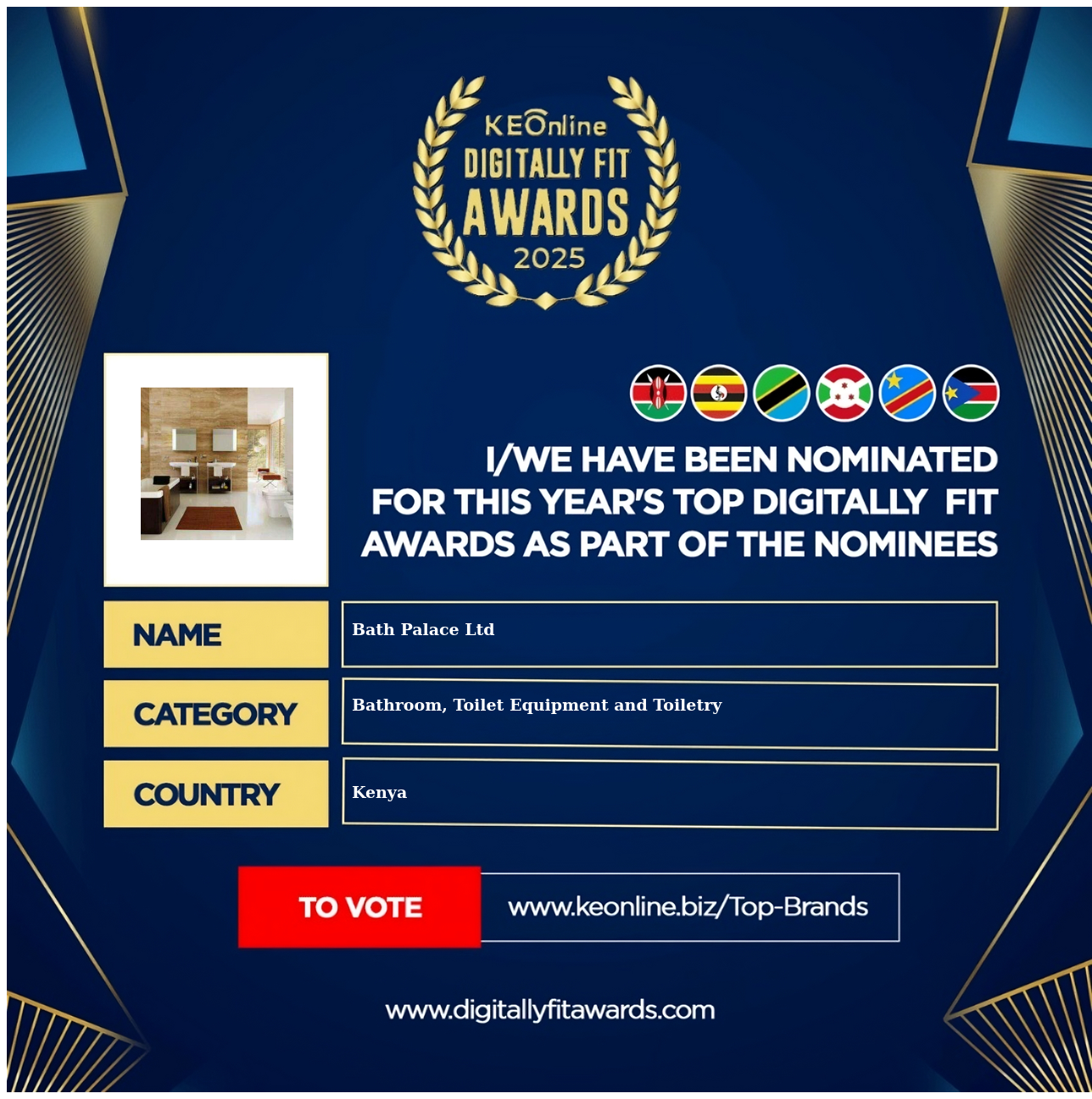 Bath Palace Ltd is a company that specializes in Bathroom, Toilet Equipment and Toiletry, The company has showed exemplary performance in services/products delivery. Bath Palace Ltd is located in Kenya, and the address/physical location is at 1st Floor, Peace Towers Above Chandarana Supermarket, Ngara Rd, Nairobi City, Kenya. Are you the owner of this Business? Click here to claim it and update it fully.