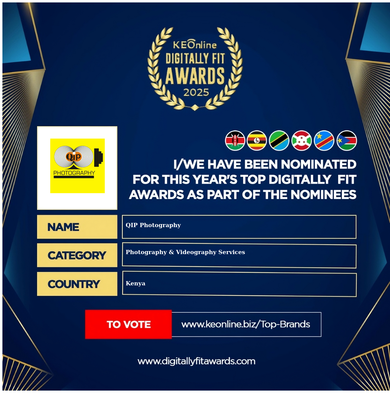QIP Photography is a company that specializes in Photography & Videography Services, The company has showed exemplary performance in services/products delivery. QIP Photography is located in Kenya, Uasin Gishu and the address/physical location is at X street address. Are you the owner of this Business? Click here to claim it and update it fully.