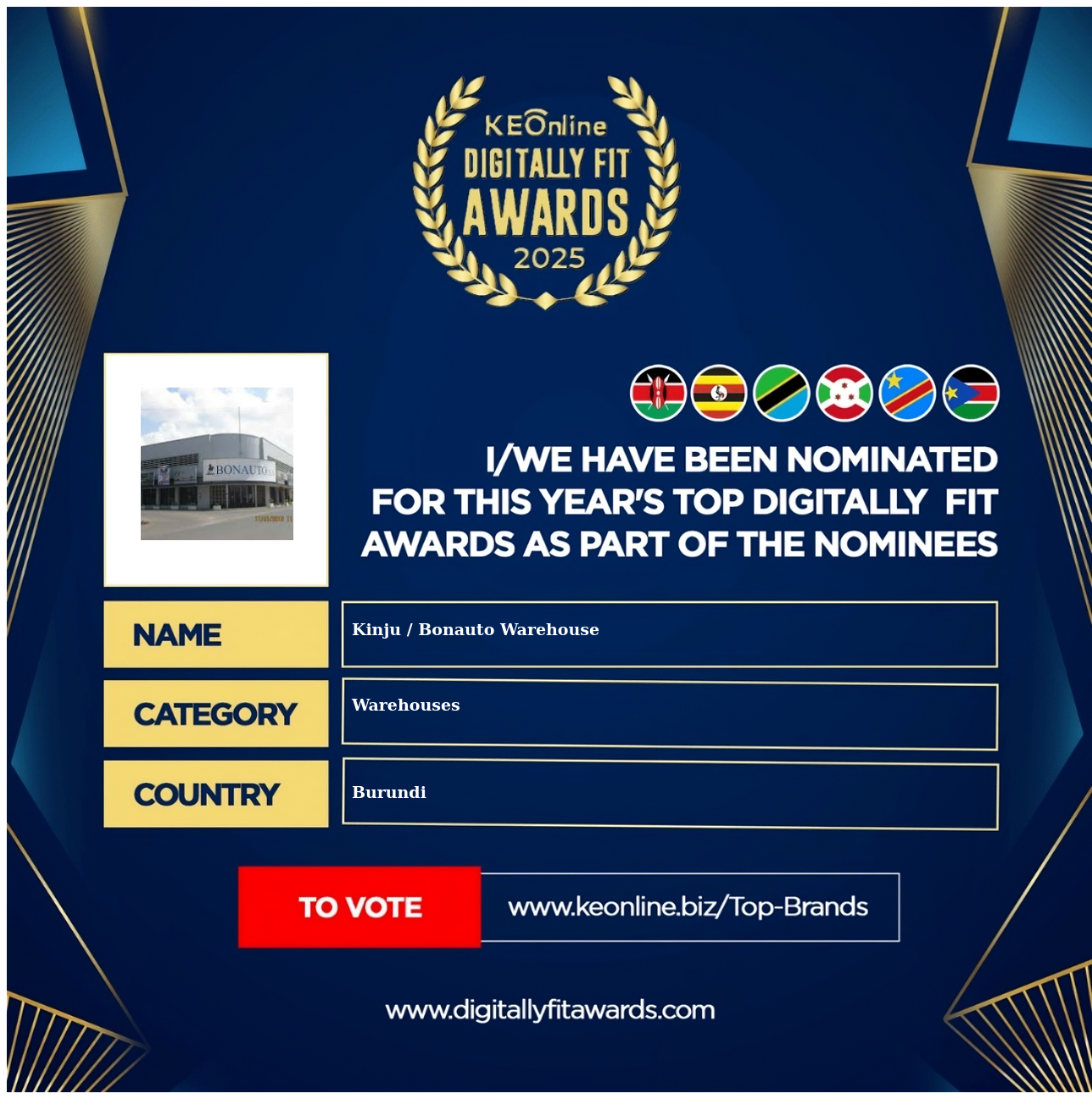Kinju / Bonauto Warehouse is a company that specializes in Warehouses, Cold Storage, The company has showed exemplary performance in services/products delivery. Kinju / Bonauto Warehouse is located in Burundi, and the address/physical location is at X street address. Are you the owner of this Business? Click here to claim it and update it fully.