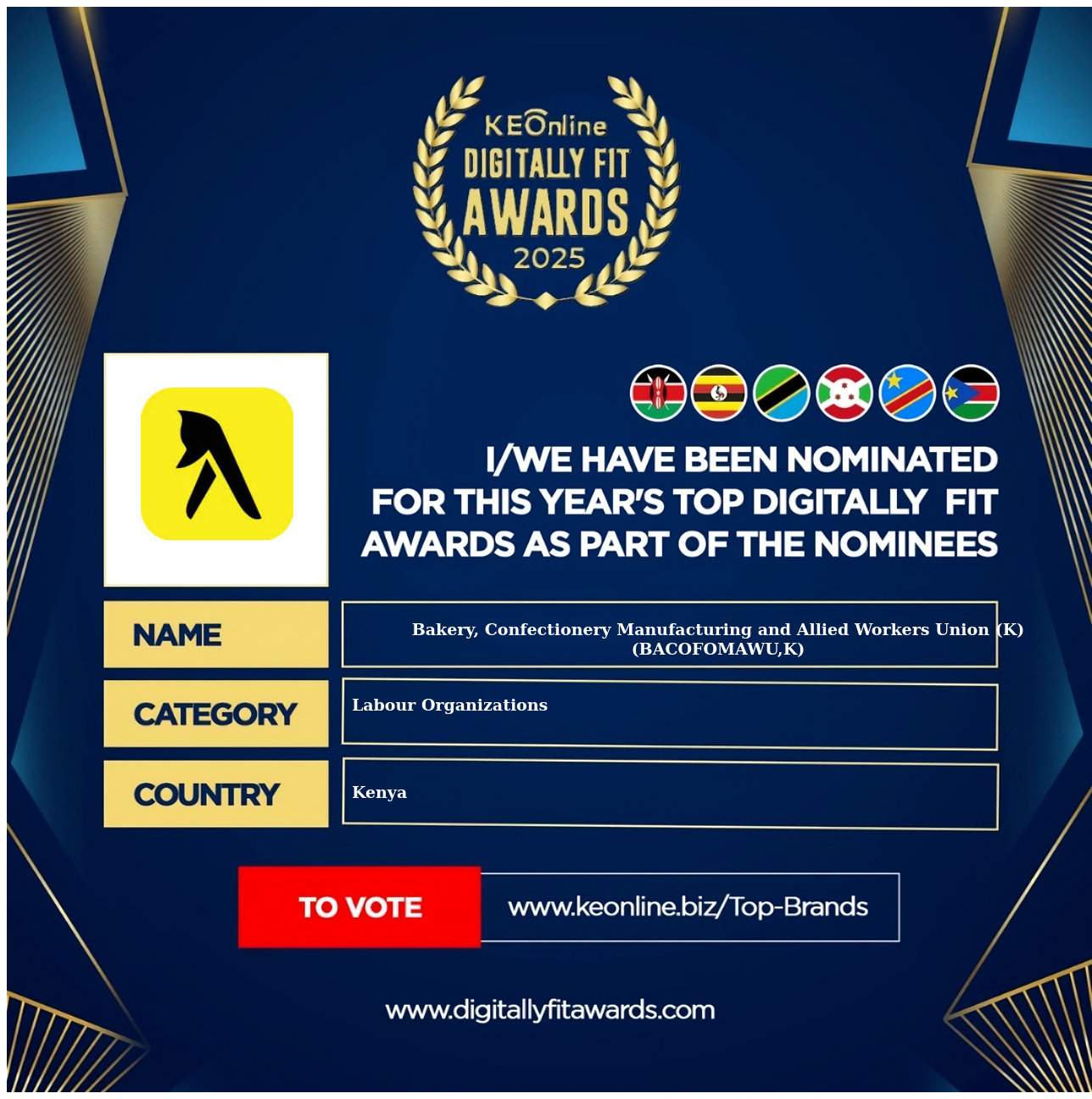 Bakery, Confectionery Manufacturing and Allied Workers Union (K) (BACOFOMAWU,K) is a company that specializes in Labour Organizations, The company has showed exemplary performance in services/products delivery. Bakery, Confectionery Manufacturing and Allied Workers Union (K) (BACOFOMAWU,K) is located in Kenya, and the address/physical location is at X street address. Are you the owner of this Business? Click here to claim it and update it fully.