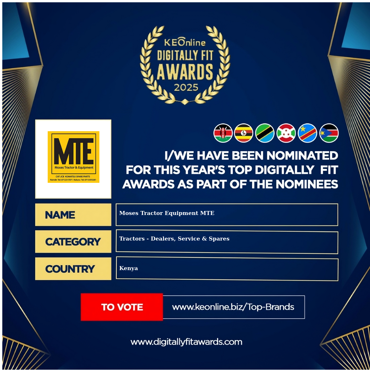 Moses Tractor Equipment MTE is a company that specializes in Tractors - Dealers, Service & Spares, The company has showed exemplary performance in services/products delivery. Moses Tractor Equipment MTE is located in Kenya, Nairobi and the address/physical location is at X street address. Are you the owner of this Business? Click here to claim it and update it fully.