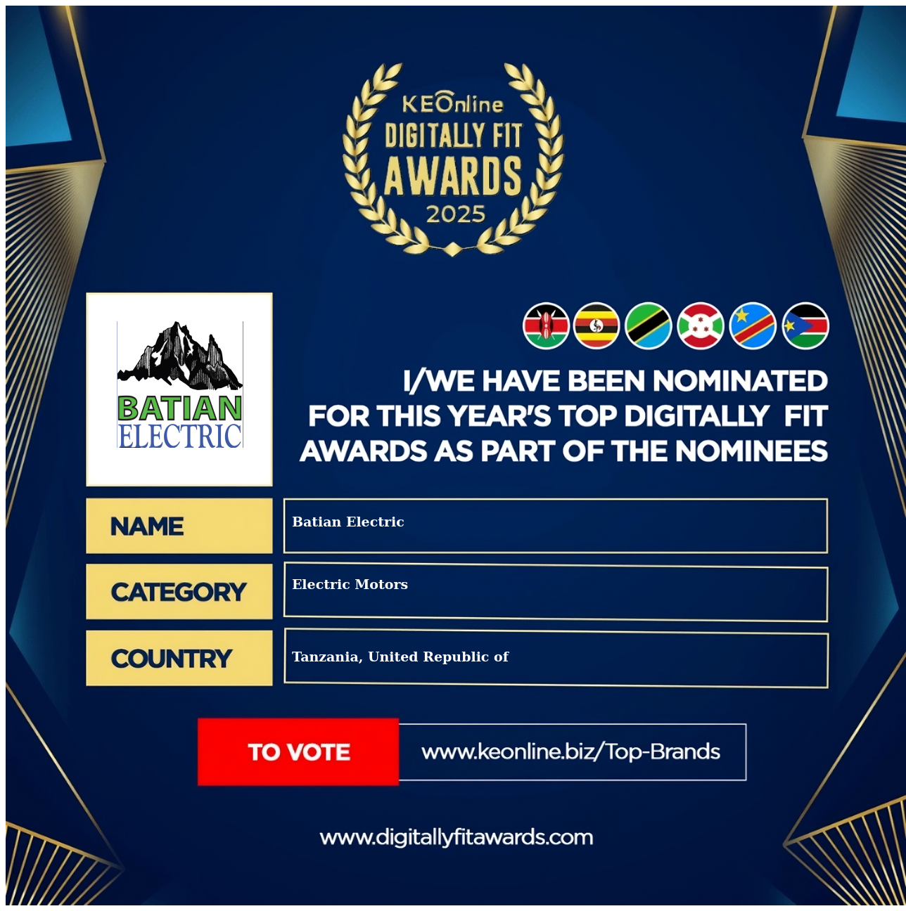 Batian Electric is a company that specializes in Electric Motors, The company has showed exemplary performance in services/products delivery. Batian Electric is located in Tanzania, United Republic of, Dar es Salaam and the address/physical location is at Shekilango Rd. Are you the owner of this Business? Click here to claim it and update it fully.
