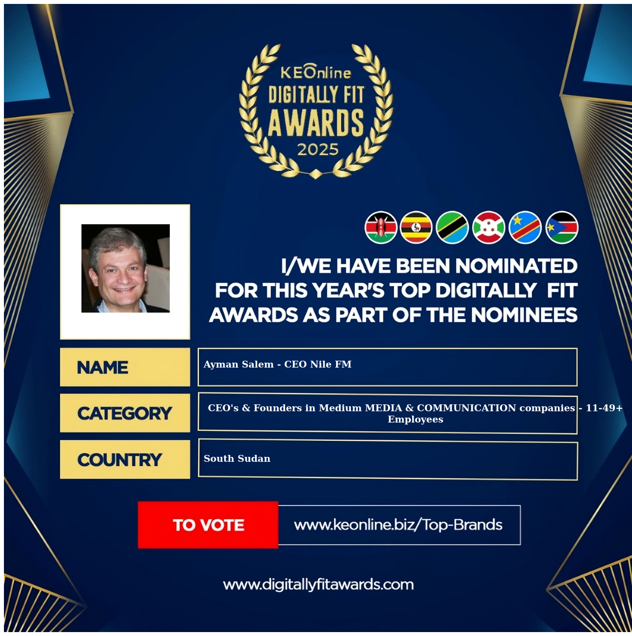 Ayman Salem - CEO Nile FM is a company that specializes in CEO's & Founders in Medium MEDIA & COMMUNICATION companies - 11-49+ Employees, The company has showed exemplary performance in services/products delivery. Ayman Salem - CEO Nile FM is located in South Sudan, and the address/physical location is at X street address. Are you the owner of this Business? Click here to claim it and update it fully.