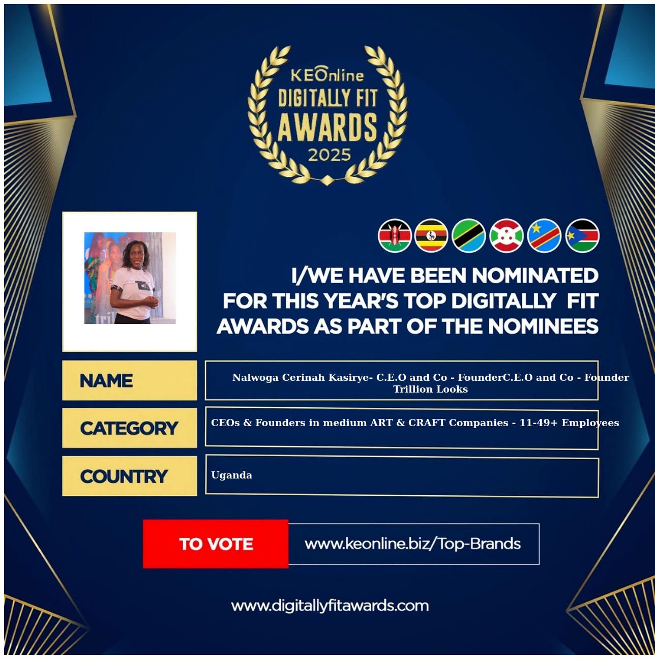 Nalwoga Cerinah Kasirye- C.E.O and Co - FounderC.E.O and Co - Founder Trillion Looks is a company that specializes in CEOs & Founders in medium ART & CRAFT Companies - 11-49+ Employees, The company has showed exemplary performance in services/products delivery. Nalwoga Cerinah Kasirye- C.E.O and Co - FounderC.E.O and Co - Founder Trillion Looks is located in Uganda, and the address/physical location is at X street address. Are you the owner of this Business? Click here to claim it and update it fully.