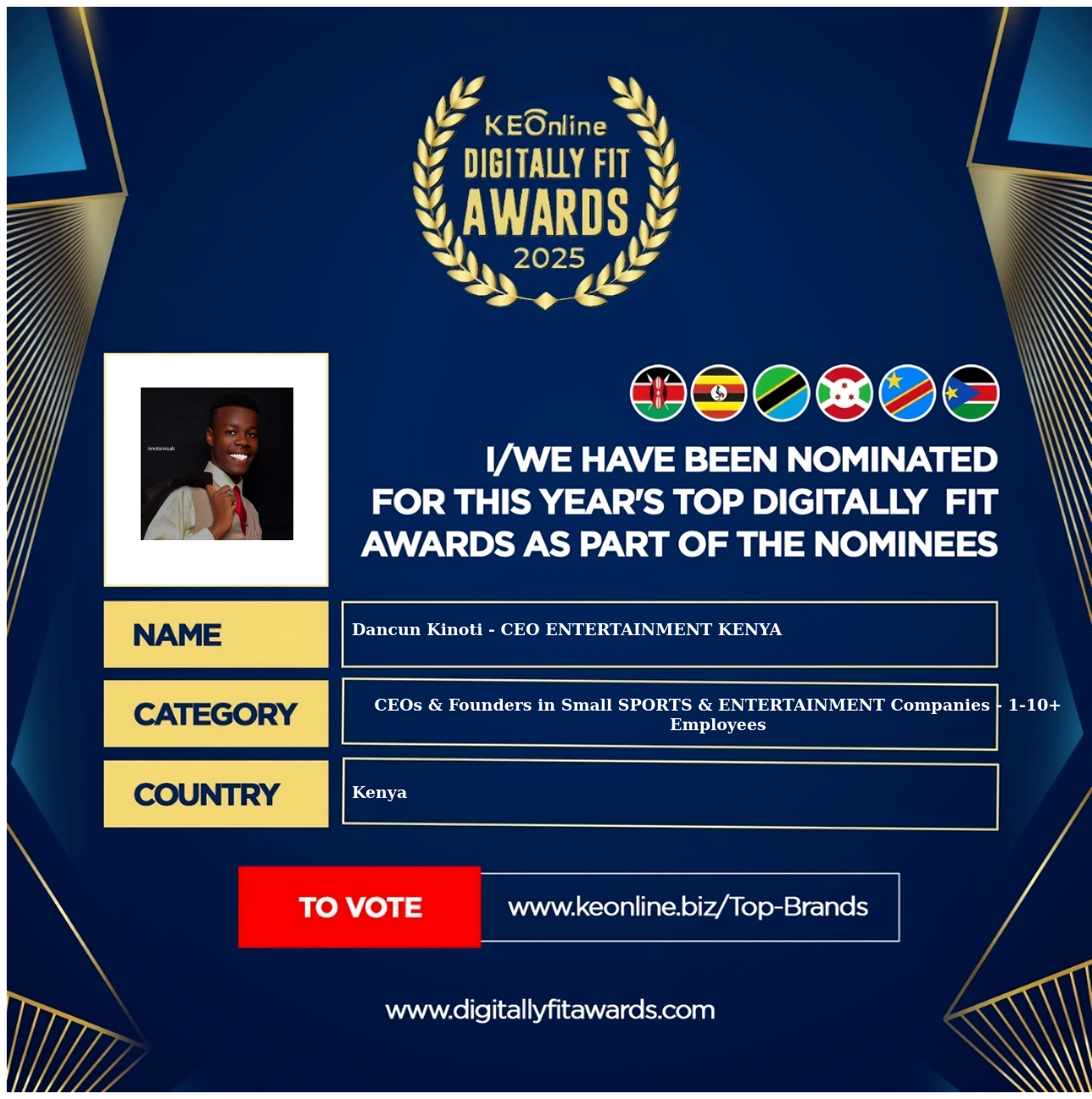 Dancun Kinoti - CEO ENTERTAINMENT KENYA is a company that specializes in CEOs & Founders in Small SPORTS & ENTERTAINMENT Companies - 1-10+ Employees, The company has showed exemplary performance in services/products delivery. Dancun Kinoti - CEO ENTERTAINMENT KENYA is located in Kenya, and the address/physical location is at X street address. Are you the owner of this Business? Click here to claim it and update it fully.