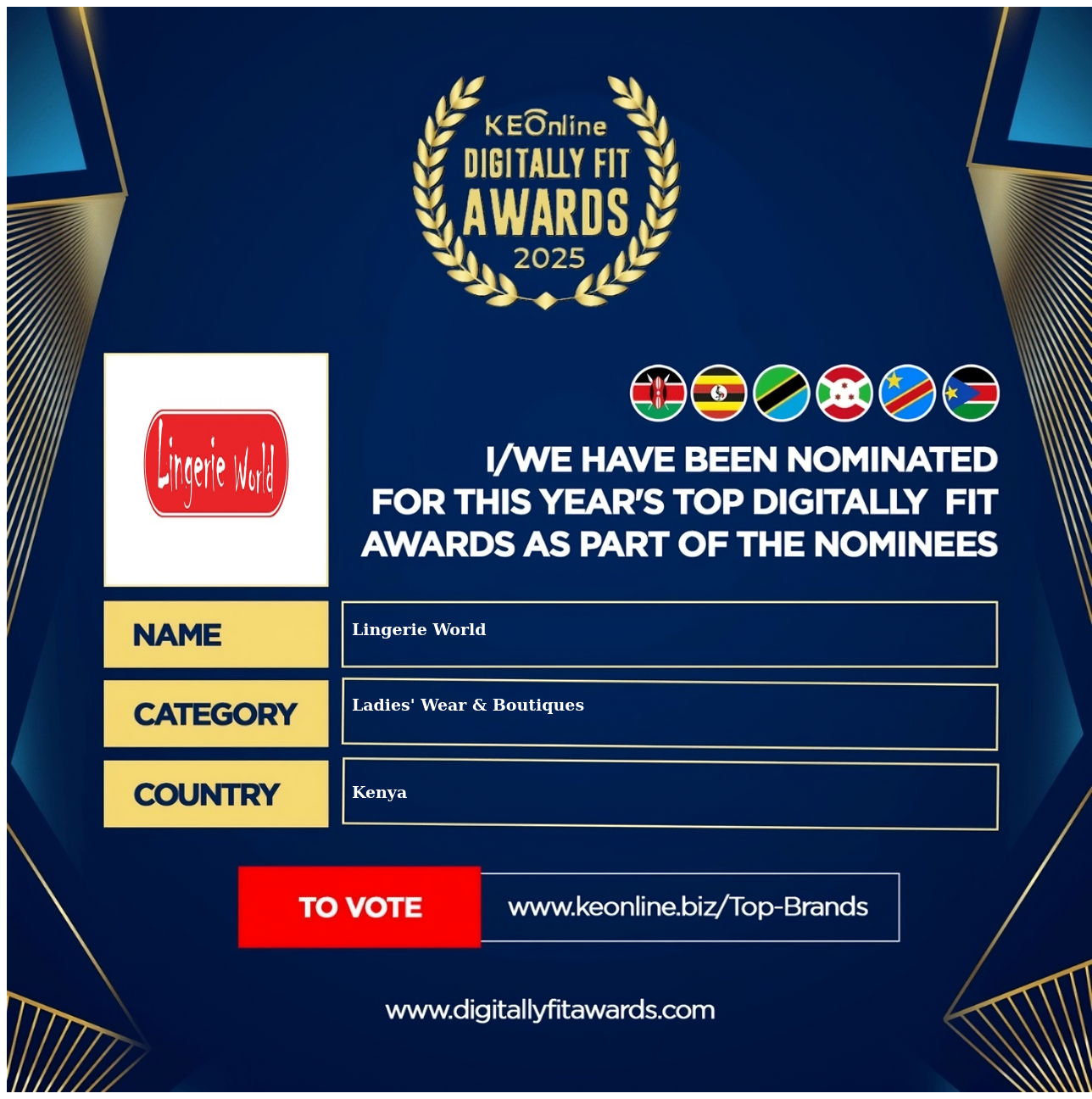 Lingerie World is a company that specializes in Ladies' Wear & Boutiques, The company has showed exemplary performance in services/products delivery. Lingerie World is located in Kenya, Nairobi and the address/physical location is at Moi. Are you the owner of this Business? Click here to claim it and update it fully.